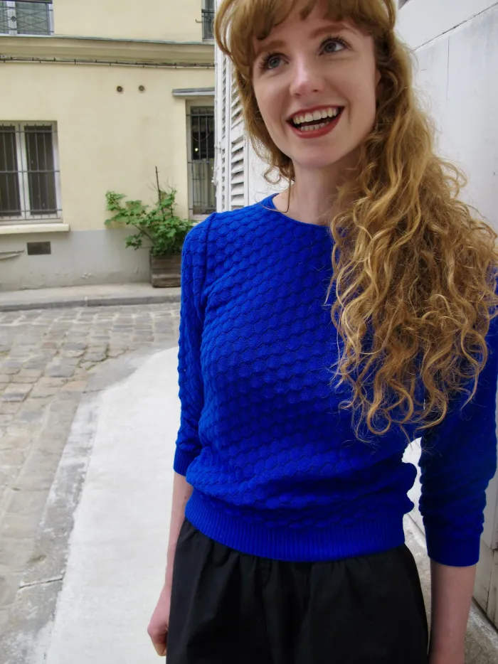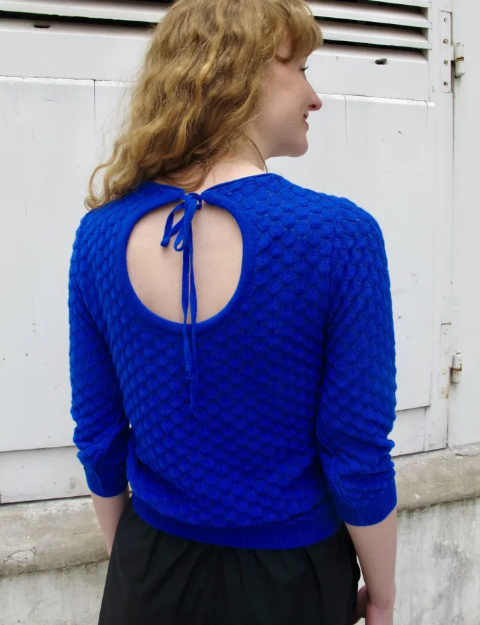Fine Lace Knit sweater with 3/4 sleeves and large tear drop opening on the back, Inspired from 1940s knitwear.